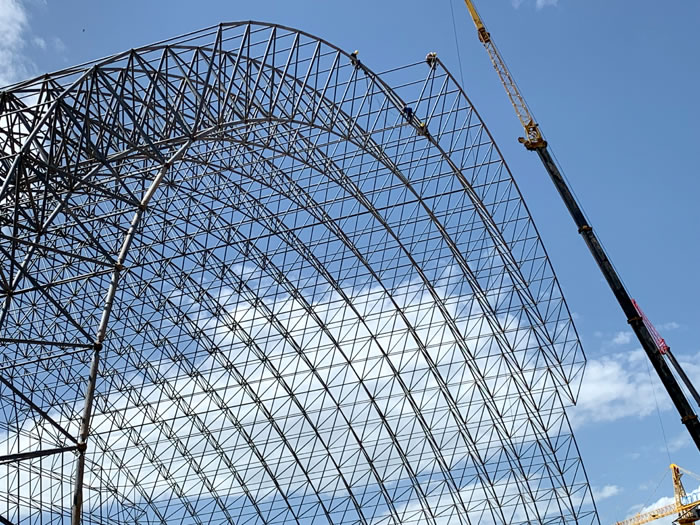 (2)网架加工前应对现场尺寸进行复测,确认无误后方可进行加工、安装;网架制作、运输、安装应遵守《空间网格结构技术规程》JGJ7-2010、《钢网架涟源螺栓球节点》JG/T 10-2009、《钢网架涟源螺栓球节点用高强度螺栓》 GB/T 16939-2016、《涟源钢结构涟源工程涟源施工规范》 GB50755-2012、《涟源钢结构涟源工程涟源施工质量验收标准》 GB50205-2020。